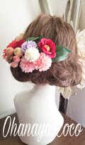 結婚式の前撮り用にお願いしました。 無事に前撮りが完了したので、感想書かせて頂きます。 自分では花の色合いや種類を決めることができず、色打掛の写真を元に作って頂きました。 完成品は依頼した通り、上品で存在感のある綺麗な花飾りでした。 実際に色打掛を着てヘアメイクさんに付けてもらったら、着物とピッタリ! 大大大満足です! お願いして本当に良かったです。 ありがとうございました。