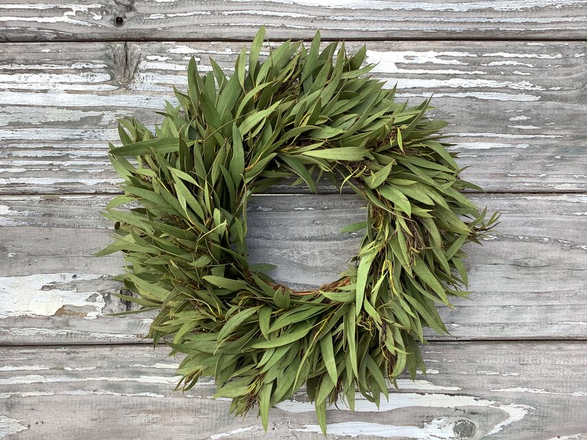 フレッシュユーカリを使った直径約24cmほどのシンプルリースです。
