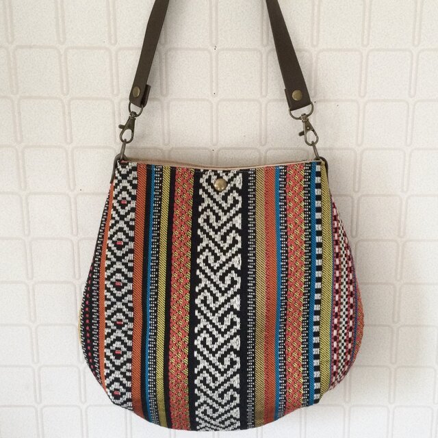 ちょっとエスニックなフランス生地で雫型バッグを作りました