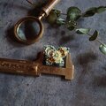 ※ アンティークのジュエリーケースはディスプレイ用です。ブローチは黒紙の貼り箱に入れてお送りします