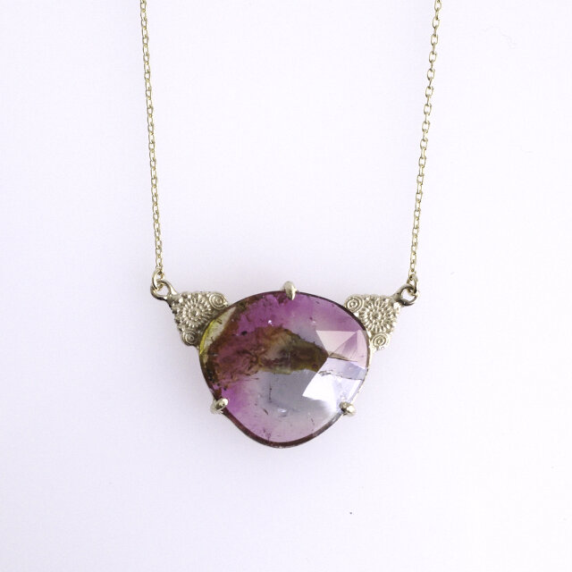 ウォーターメロントルマリンのK10製、1点ものネックレスです。