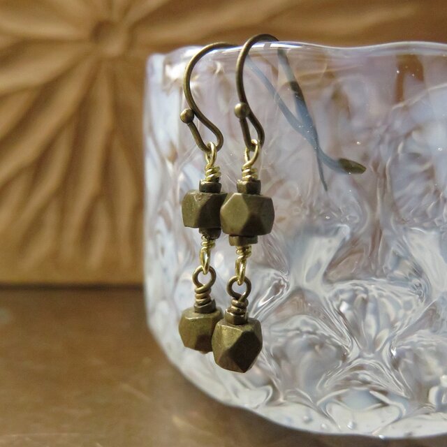 インド渡りのオールド真鍮で、ピアス&イヤリングを作りました。