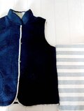ネイビーの軽いボアと、ボーダーのスエット地で作った一重のベストです。