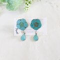 アンティーク調のエメラルドグリーンのチェコビーズのお花に、小さな白いお花を重ねて、アイスミント色のガラスチャームが美しいスタッドピアスです。