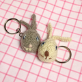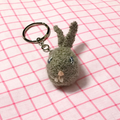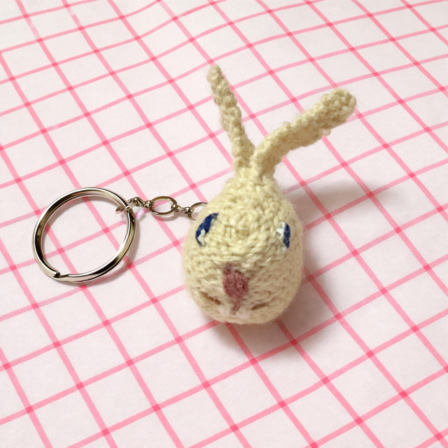 カバンに付けてもキーホルダーとしても使える ちょっと茶目っ気のある小さなウサギのアクセサリーを やさしい素材の毛糸で丁寧に編み上げました