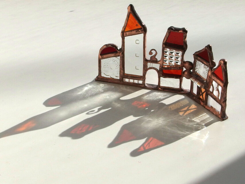 黄昏の町がわたしの所に異国の風を運んできてくれました。オレンジ色に包まれた夕暮れの町並みを見ているとその暖かくてちょっぴり不思議な世界に引き込まれてしまいます。楽しいです。ワクワクします。 暖かいガラスの色、少しまるみのある可愛らしい建物、とってもとっても良いです✨ 梱包はもちろん丁寧ですが開け方もきちんと説明してくださりありがとうございました 大切にしますね