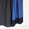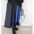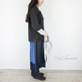 ナチュラルなコットンブラックデニム、柔らかネイビーブルーデニムにリネンデニムをパッチワークでポイントして