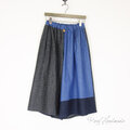 [予約販売]デニム配色パッチワークワイドパンツ☆ネイビーブルー