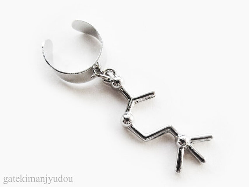 「ストレス解消ホルモン」とも呼ばれる脳内ホルモン‘アセチルコリン’の原子記号をモチーフにしたイヤーカフスです。