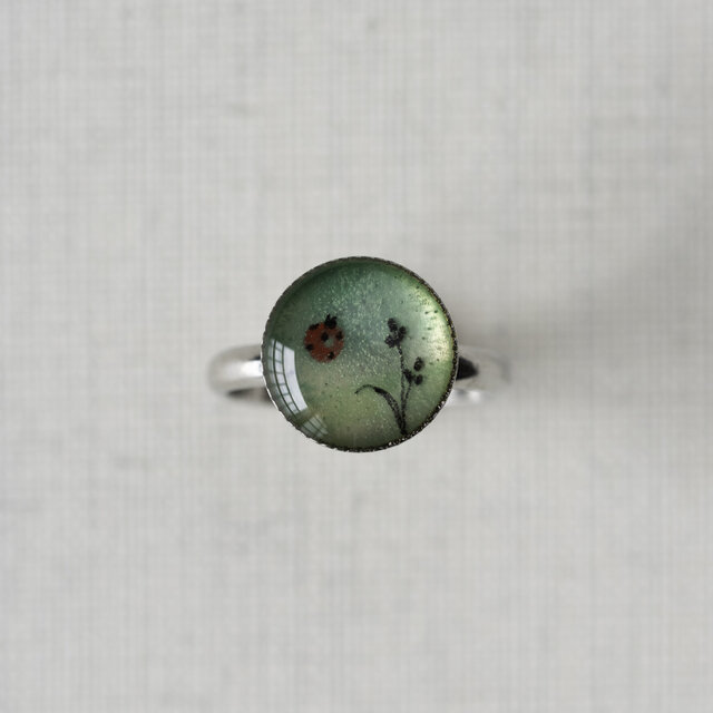 手描きのオリジナルイラストをレジンで閉じ込めたゆびわです。