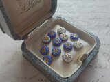 ブルーのglassに、一段わずかに低くなって雪の結晶モチーフがほられGold色で色付けされております。お色もしっかりのっており、小さいながら1つ1つがとても綺麗です。