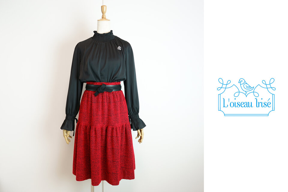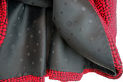 こっくりとしていて鮮やかな発色と、刺繍のニュアンスある水玉、凹凸が美しい生地です。