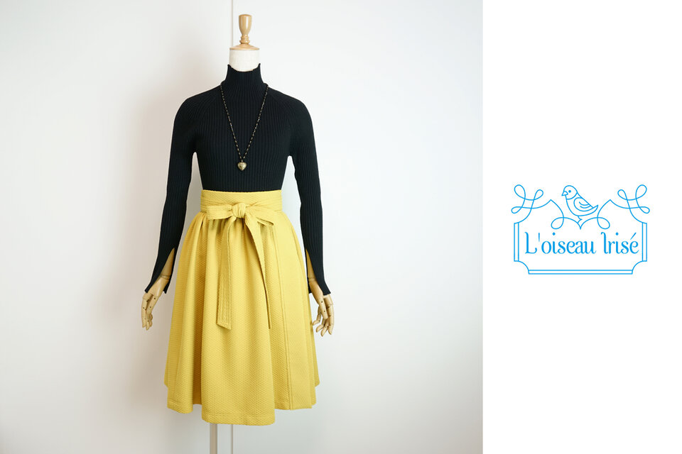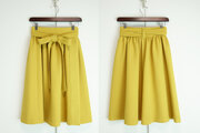 奥身ベルト穴から出したリボンを、二重で結ぶタイプの巻きスカートです。