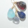 その下に、澄んだ空の色宝石質ブルーカルセドニーAAAのドロップブリオレットカット、その下に夜空の色宝石質ラピスラズリAAAのドロップブリオレットカット、一番下に宝石質アイオライトAAAのオニオンブリオレットカットを下げました。