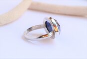 (ラピスラズリを台座にして、その上にカット入りのクリスタルを重ねたダブレットタイプ。中央に向かって三角形のカットが連なる「ローズカット」が施されています)