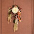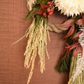 花材:ワラベース、稲穂、アセビ、五葉松、ヤマシダの葉、おかめ南天、マム