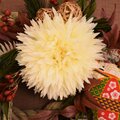 白の大きなマムをメインに入れて、回りにグリーンを添えました。