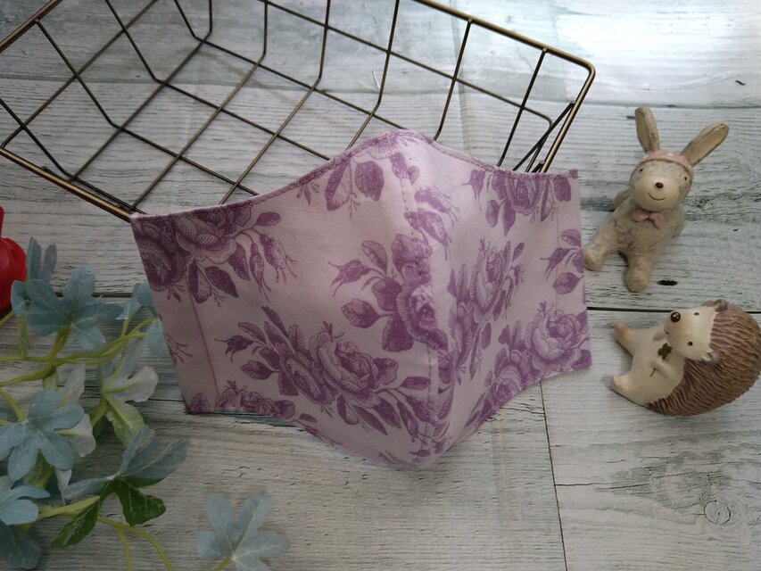 『再販』送料無料✨Tildaの生地使用✨薄紫✕同系色の繊細なタッチのバラ柄がオシャレなマスクです✴