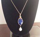 白蝶真珠はサークルや凸凹のあるバロックですが、艶・テリ良く、ラピスラズリの藍色との美しいコントラストが目を引きます。