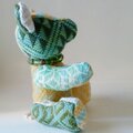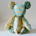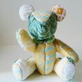 もっちゃん様ご注文品:こぎん刺しのテディベアM 全身総刺しこぎんクマグリーン