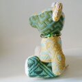 ハギレを使ったので、足底や耳などにほんのり色が入って、首の飾りのチェコビーズともなじみます。