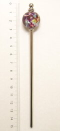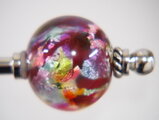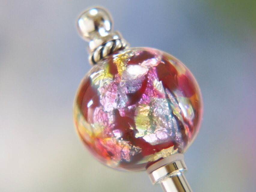 黄色や青といった不思議な虹色がキラキラと輝くとんぼ玉を