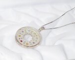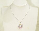 たくさんの色石を留めたのトップ(SV925製、ロジウム)と、同じくSV925製(ロジウム)のスライド式チェーンのネックレスです。
