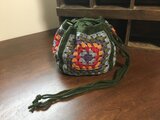 グラニースクエアモチーフ5枚を筋編みでつなぎ合わせたキューブ型の巾着です。