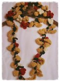 ネイビー、赤、ベージュ、白の冬らしい色を使ってラリエットを作りました。