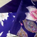 本日届きました。銘仙の柄も別珍の色味もとても素敵ですね。お手紙も以前購入した襟巻と同じ柄のプチストールもお心遣いに感謝いたします。この秋冬も3枚とも大切に使わさせていただきます。裏地の色選びの段階からからずっとワクワクし待って居りました。本当に価値のある買い物をさせていただき有難うございました。