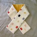 本日届きました。銘仙の柄も別珍の色味もとても素敵ですね。お手紙も以前購入した襟巻と同じ柄のプチストールもお心遣いに感謝いたします。この秋冬も3枚とも大切に使わさせていただきます。裏地の色選びの段階からからずっとワクワクし待って居りました。本当に価値のある買い物をさせていただき有難うございました。