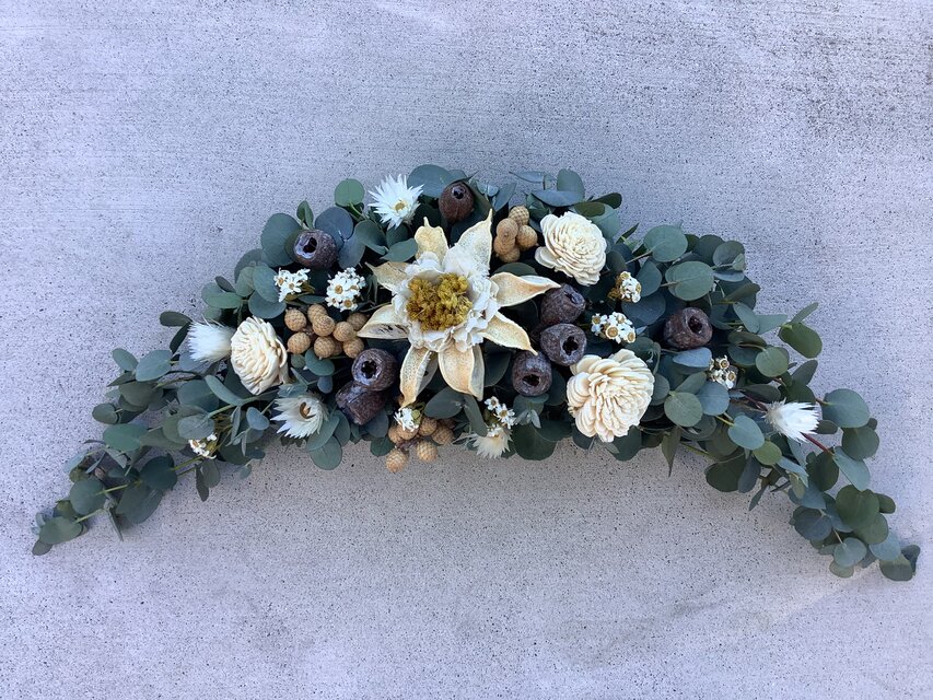 使用材料 ユーカリ、ソラフラワー、カネラ、ユーカリポポラス、エバーラスティング、SAデージーなど。