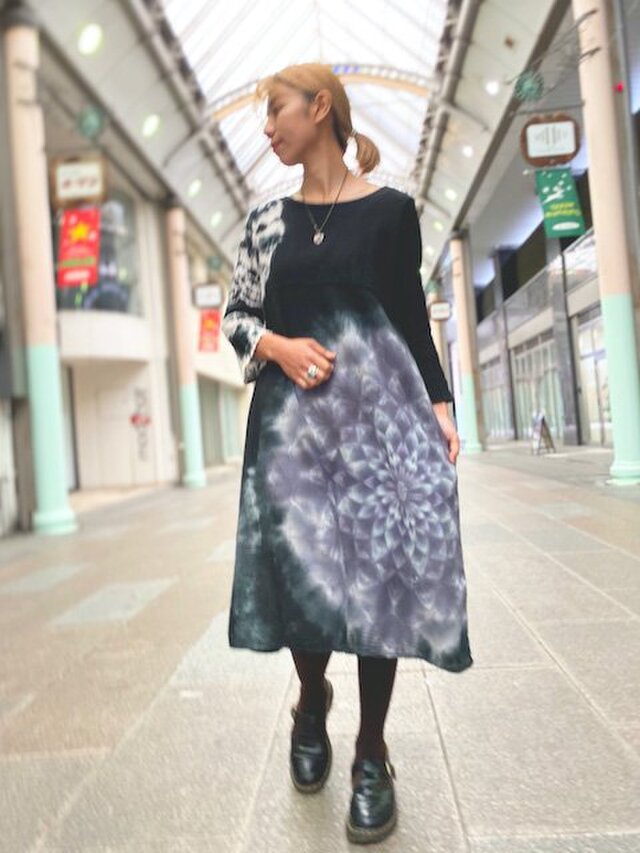 ハンサム染め最新作!!超人気新型長袖ワンピース♪ブラックビューティ 美しい叢雲色の大曼荼羅 HD12-90
