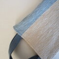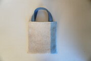 裂き織りの小さな手さげ ミルクベージュ×グレイッシュブルー
