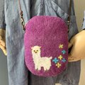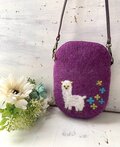 花舞う風景と動物の羊毛フェルトポーチポシェット(アルパカ)