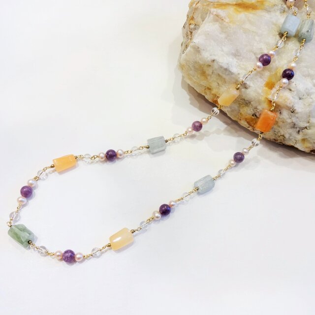やさしいミックスカラーの天然石ネックレス Y-1356