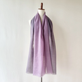 さらウール*WOOLSILK*葡萄色×白色×月白色*手染ウールシルクストール3枚目の購入です。プレゼントも入れたら4枚目。 今回は多色のグラデーションにしました。 色合いが本当に素敵で、多色なのでいろんなお洋服に合うと思います。 価格はお手頃、品質良し、発送早い、3拍子揃っており今回も気持ち良いお取引ができました、
