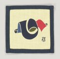 生地の余白を生かし、「心」の絵文字を大胆にアレンジ。こうした絵文字は「芹沢文字」と呼ばれ、氏の創作物における代表的な特徴となっています。