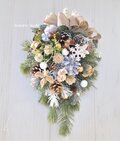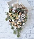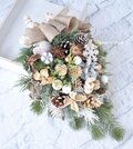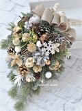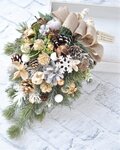 素材:アーティフィシャルフラワ-(造花):コニファー・スノーボール・ゴールドボール、など。