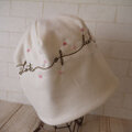 こんにちは。 お陰様で無事に作品が届きました!! 凄く肌触りの良い布でデザインも刺繍も可愛くて大きさも丁度良く梱包も丁寧に温かいお葉書まで有難うございました 大切に沢山被らせて頂きます。 有難うございました