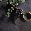 つまみ細工 ブーケ ブローチ ( すみれとクロアゲハ )※ プレートは別売り