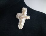 プックリした真珠からヒラヒラとなびく虹色のヒレ。 とっても素敵です。 大きさも十分ですし、スワロフスキ-のアクセントも効いています。 黒い服に映えそうです。