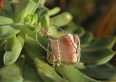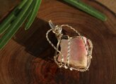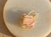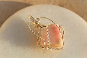 部分的に淡いピンクの入ったタグチュパイトのタンブルをシルバーのワイヤーで巻きました。