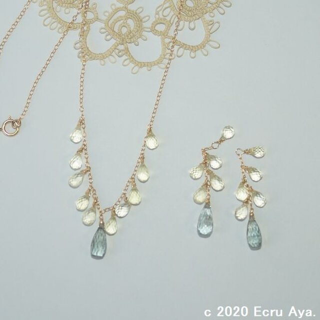 素材:宝石質モスアクアマリンAAA ドロップブリオレットカット、宝石質レモンクォーツAAA ドロップブリオレットカット、その他すべて14kgf