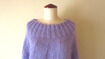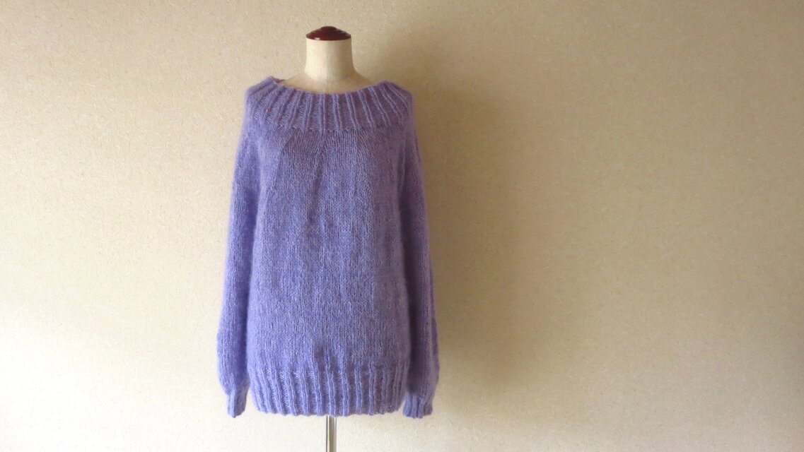 ペールカラーのキッドモヘアとウールを使って、手編みのセーターを作りました。