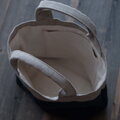 厚手のキャンバス生地を使用していますので丈夫ですが、リネンの柔らかな風合いもあります。裏布にはコットンキャンバスを使用し、ポケットを一つ付けました。