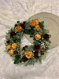温かみのあるバーガンディ色のローズがサンフラワー色のローズを落ち着かせてますので、シンプルで落ち着いた大人っぽさを感じられるリースです。