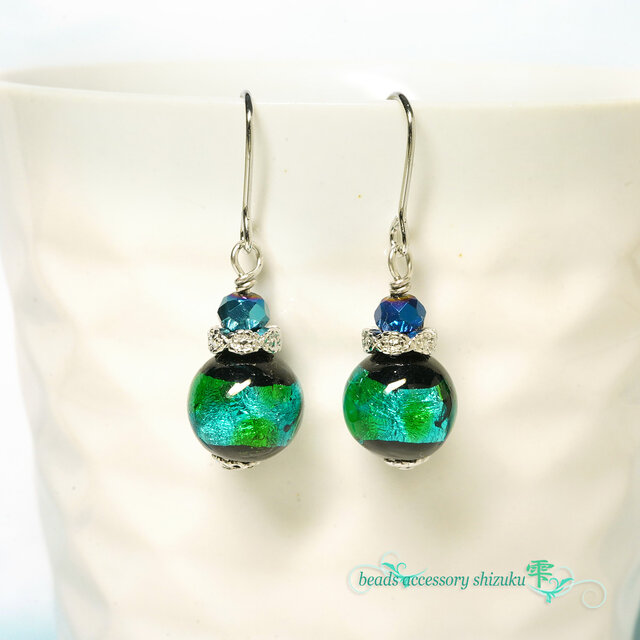万華鏡のように美しい煌めきのホタル玉のピアスです。