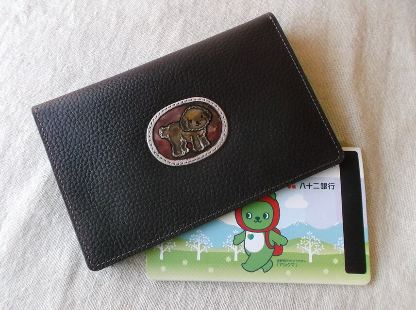 タンロウ革に可愛らしいキャラクターをあしらい、手染めしました。