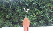 新居に飾る作品としてずっと欲しかったので購入。木のぬくもりと写真通りの愛らしい表情がとても素敵で、子供も積み木の様に遊ぶので親子共々気に入っています♪ 土台になる足パーツのくぼみはちゃんと受け皿なって一輪挿しが落下しない様になっており、デザインが損なわれない工夫が素晴らしいなと感じました。 梱包もとても丁寧で可愛らしい箱で届くのでお買い物をして良かったなと感じられるお勧めの作品・作家さんです⭐︎